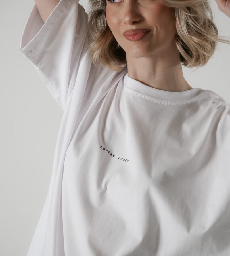Onesize i oversize majica, dolazi u tri klasične i najtraženije boje – beloj, crnoj i sivoj. Izrađena je od 100% pamuka – najkvalitetnijeg koji se može pronaći na našem tržištu. Dolazi u originalnoj kutiji koja je ujedno i naš zaštitni znak. Lagodna je za nošenje, može se nositi po kući kao ‘cozy’ majica ili kao ležerni modni komad